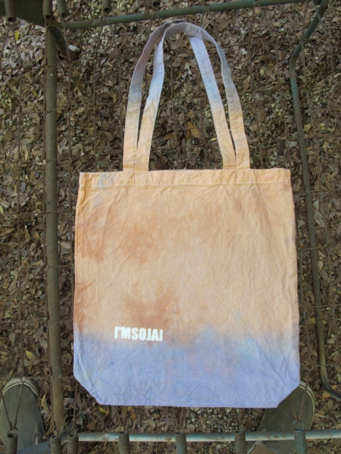 I dyed and printed a stack of organic cotton tote bags